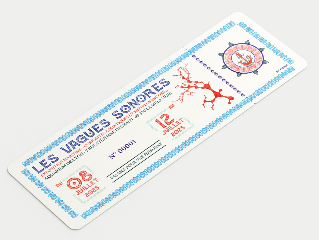 L’identité visuelle des Vagues Sonores ne se limite pas à l’illustration traditionnelle de la mer mais en extrait des éléments graphique significatifs. Elle puise sa force dans l’observation des motifs naturels : la sinuosité d’une vague qui se brise, le mouvement fluide des algues et l’élégance organique de la faune marine.
